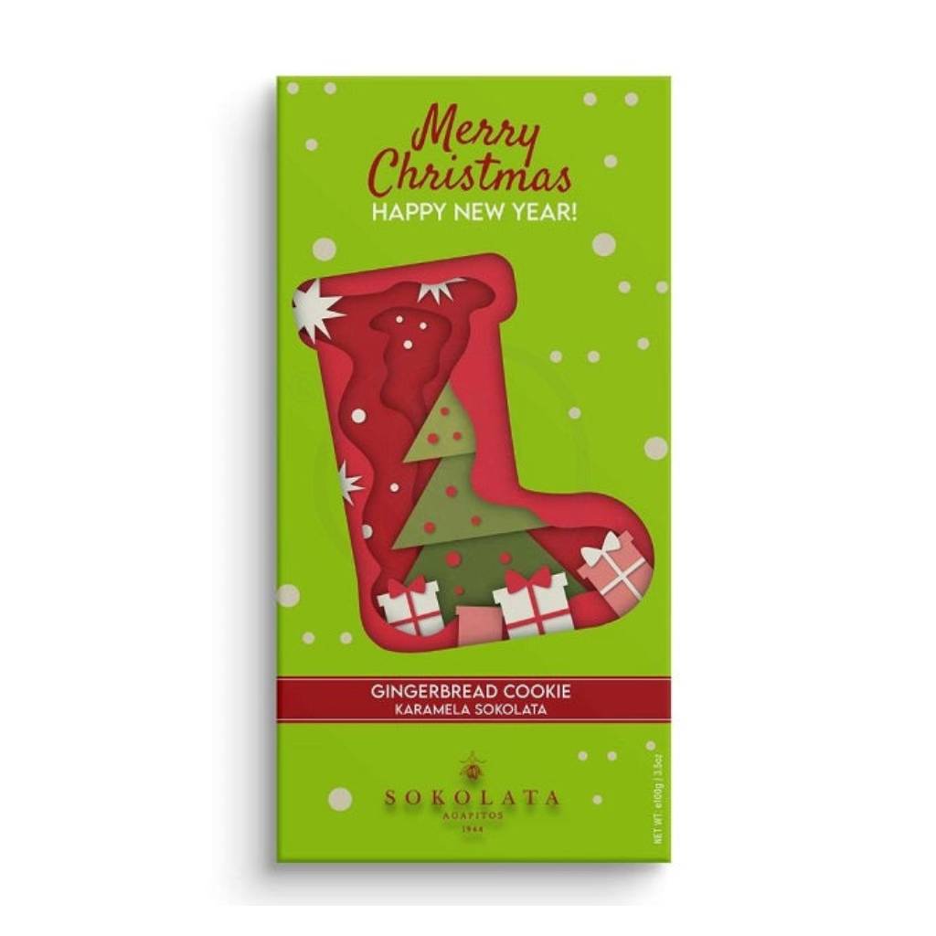 Χριστουγεννιάτικη γλυκιά απόλαυση με χαρακτήρα! Το Agapitos Gingerbread Cookie Karamela Chocolate συνδυάζει αρωματικά gingerbread cookies με καραμέλα και πλούσια σοκολάτα, δημιουργώντας μια μοναδική, χειροποίητη ελληνική σοκολατένια εμπειρία. Ιδανικό για δώρο ή γιορτινές στιγμές γεμάτες γεύση.
