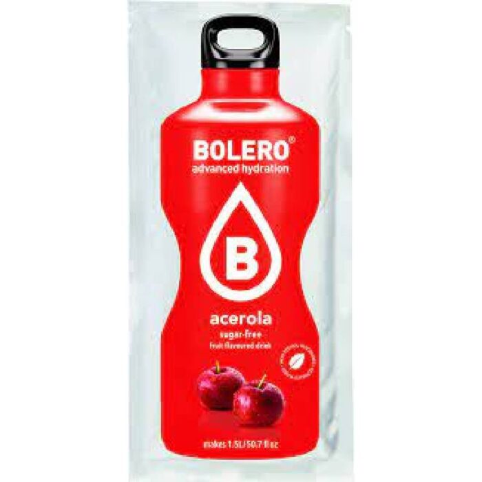 Bolero Acerola είναι ένα στιγμιαίο φρουτοποτό σε σκόνη , χωρίς ζάχαρη και χωρίς υδατάνθρακες, που θα καλύπτει τις καθημερινές ανάγκες του σώματος σου για άμεση ενυδάτωση. Ένα φακελάκι είναι αρκετό για την παρασκευή ενός τελικού ροφήματος με έντονη γεύση φρούτων. Xρησιμοποιήστε ένα φακελάκι σκόνης ροφήματος για την παρασκευή 0,5 – 0,75 λίτρων ροφήματος.