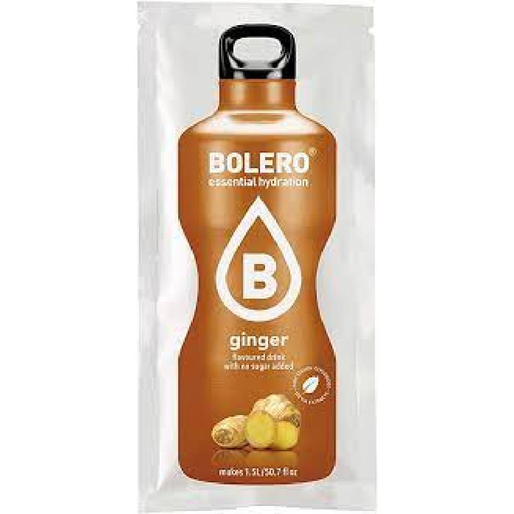 Bolero Ginger είναι ένα στιγμιαίο φρουτοποτό σε σκόνη , χωρίς ζάχαρη και χωρίς υδατάνθρακες, που θα καλύπτει τις καθημερινές ανάγκες του σώματος σου για άμεση ενυδάτωση. Ένα φακελάκι είναι αρκετό για την παρασκευή ενός τελικού ροφήματος me έντονη γεύση τζίντζερ. Xρησιμοποιήστε ένα φακελάκι σκόνης ροφήματος για την παρασκευή 0,5 – 0,75 λίτρων ροφήματος.