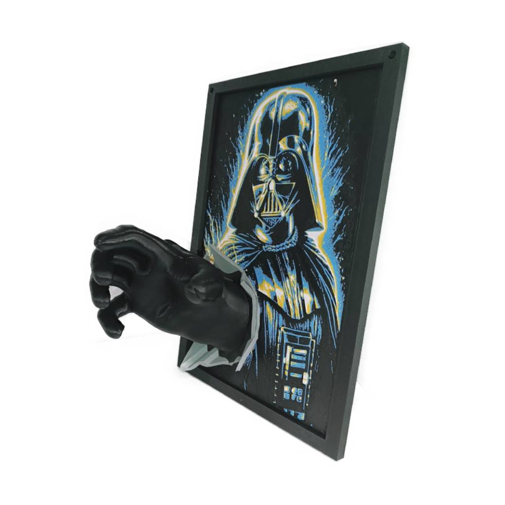 Ένα επιβλητικό 3D έργο που φέρνει τον Darth Vader στη ζωή, με το Χέρι του να προεξέχει από το κάδρο για ένα δραματικό εφέ. Το σκοτεινό φόντο τύπου Star Wars ενισχύει την ατμόσφαιρα, προσφέροντας μια εντυπωσιακή και κομψή διακοσμητική πρόταση για κάθε φαν της Γαλαξιακής Αυτοκρατορίας.