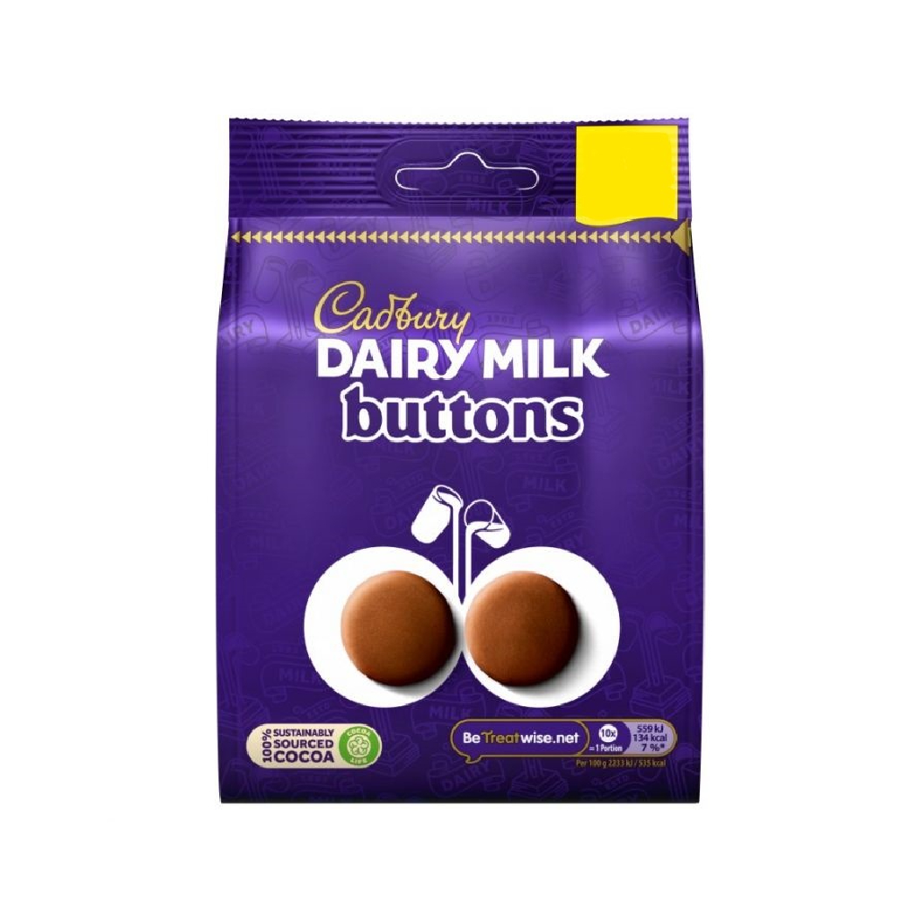 Τα Cadbury Dairy Milk Buttons είναι διασκεδαστικά σακουλάκια με κρεμώδη σοκολάτα γάλακτος