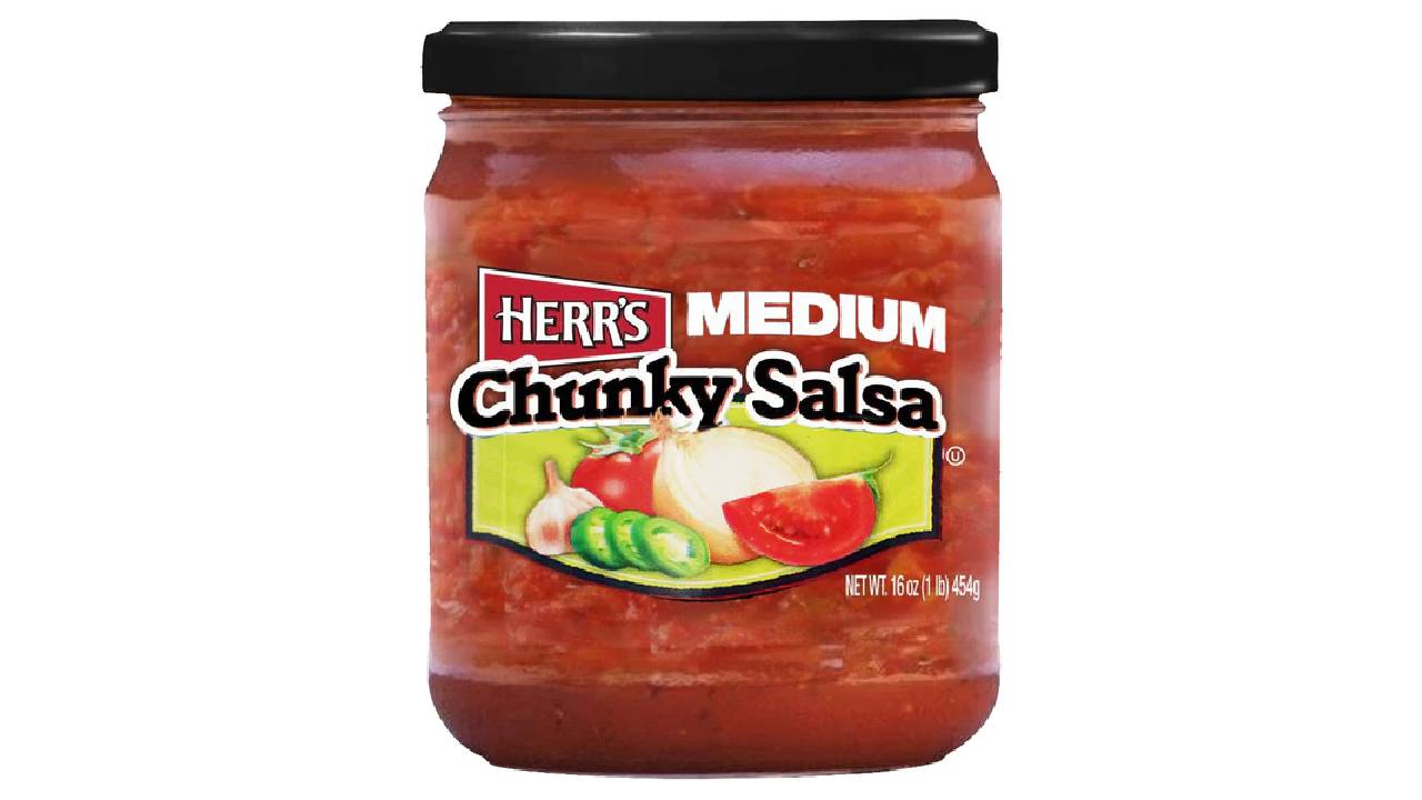 Το Herr’s Chunky Medium Salsa παρασκευάζεται από φρέσκια ντομάτα, πουρέ ντομάτας Jalapeno Peppers, Κρεμμύδι.