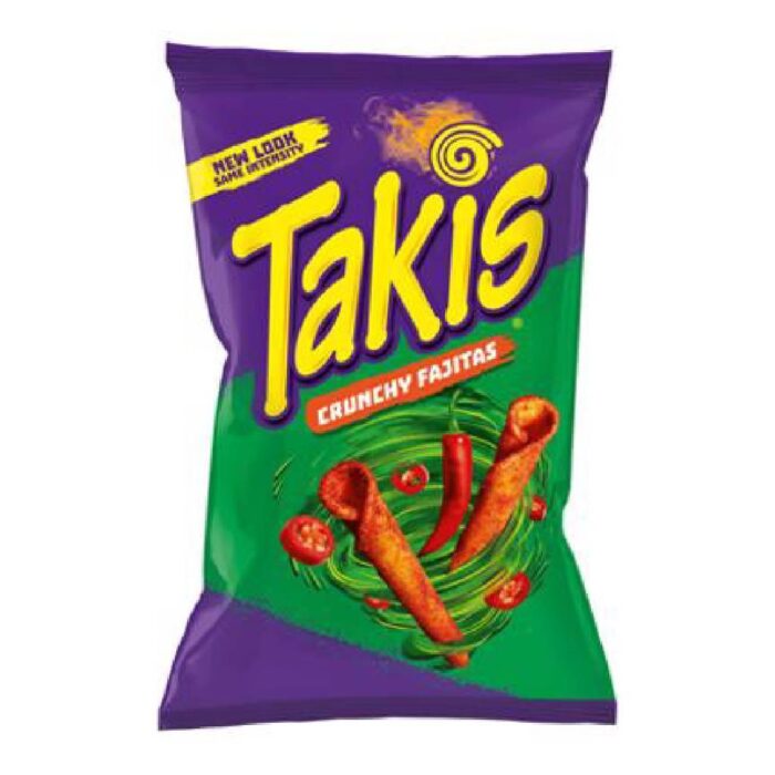 Takis Crunchy Fajitas Εμπνευσμένα από το διάσημο πιάτο Tex-Mex, τα πατατάκια μας προσφέρουν τολμηρές γεύσεις που αναζωογονούν τις γεύσεις σας με κάθε μπουκιά!