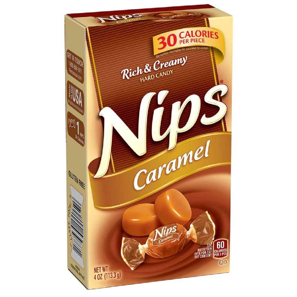 Nips Caramel Candy Αυτή η σκληρή καραμέλα είναι γνωστή για την ομαλή, κρεμώδη υφή της και το μέγεθος της μπουκιάς της .