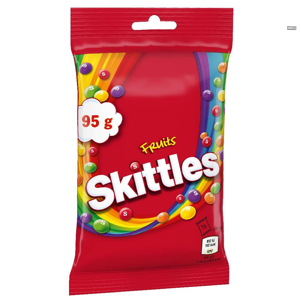 Το Skittles Fruit είναι μια μασώμενη καραμέλα σε τραγανά κελύφη ζάχαρης με γεύση φρούτου. Δεν υπάρχουν δύο πακέτα πανομοιότυπα Skittles! Απολαύστε έναν μοναδικό συνδυασμό γεύσεων φρούτων!