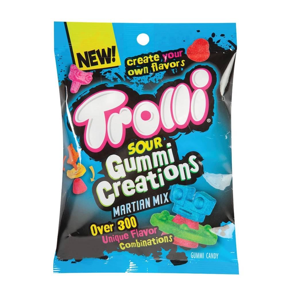 Trolli Martian Mix που κατασκευάζεται από την Ferrara Candy. Κάθε Gummy είναι 2 γεύσεις σε μία! Με Sweet & Sour Flavors όπως το Sweet Strawberry και το Rowdy Blue raspberry.